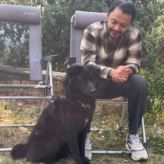 Nearby, the pup and the elder canine tumbled in joy, rolling in the grass, demanding affection. Their games paused only to solemnly sit beside Prasiddh, observing the deep conversations between Ameen and our ever-gracious Manisha ji.